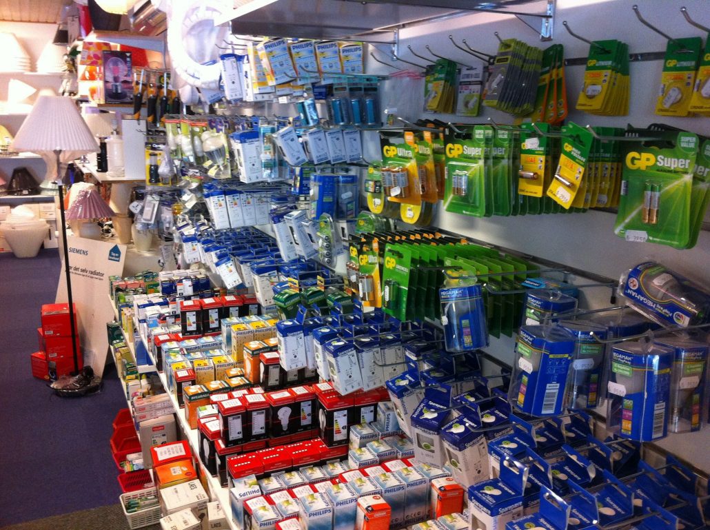 I Vejlegade i Nakskov har vi en butik, der forhandler et stort udvalg af lamper og diverse el-artikler. I butikken har man mulighed for at få råd og vejledning af kompetent personale.